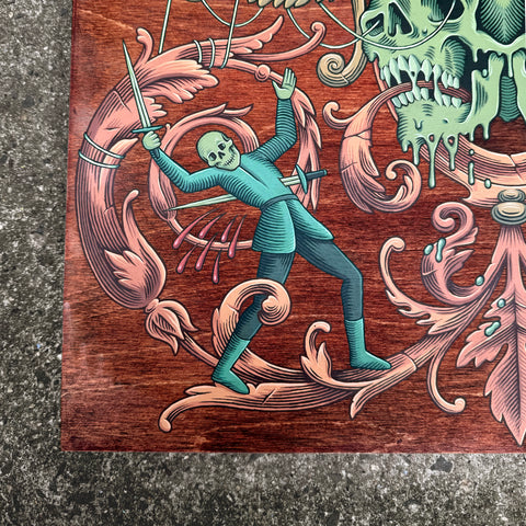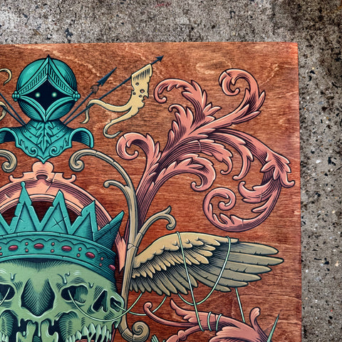 Acrylic and stain on cradled wood panel